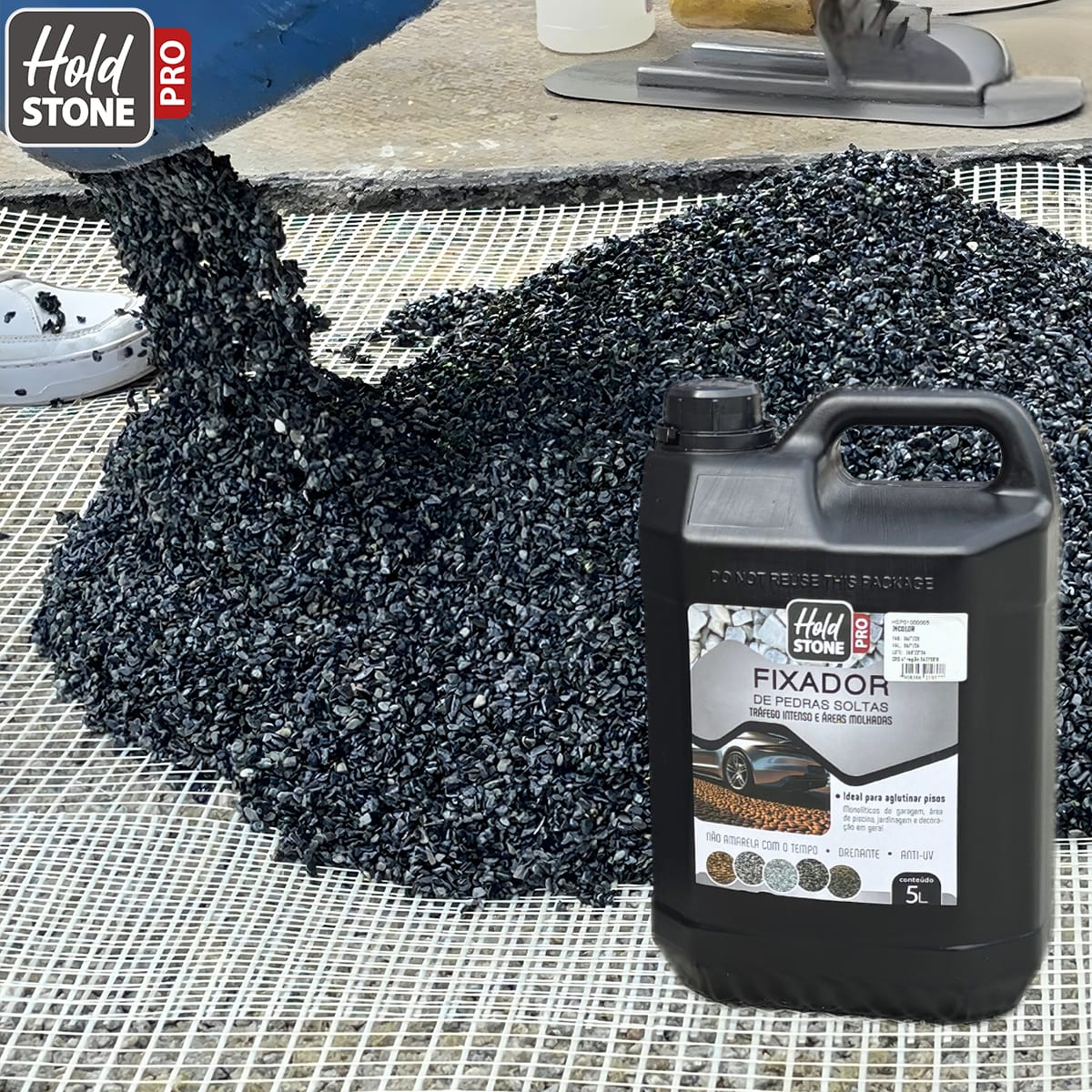 Hold Stone Pro, com a dosagem exata já calculada para a quantidade de pedras do balde, garantindo aplicação rápida, simples e com resultado perfeito.